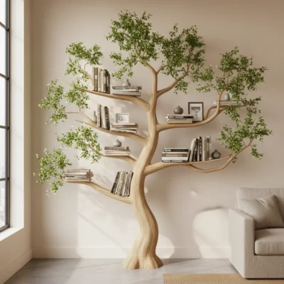 These small details not only add character, but they also turn the tree bookcase into a reflection of your personality — not just a storage solution, but a curated corner of your home.